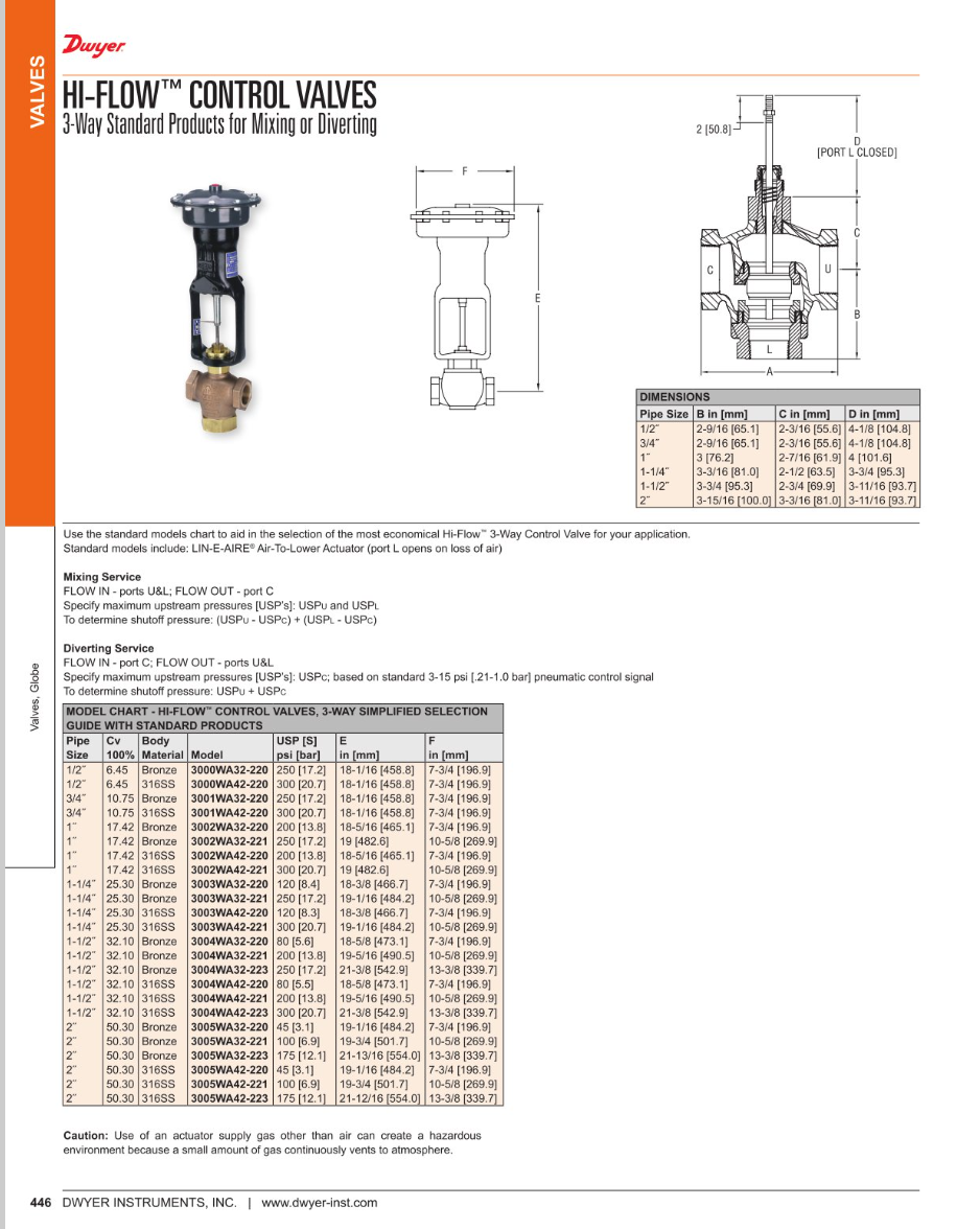 Brand: Dwyer Instruments, LLCW.E. Anderson Hi-Flow™ control valves are single seated, top or cage guided globe valves - probably the simplest, from construction standpoint, yet most versatile control valve in use.