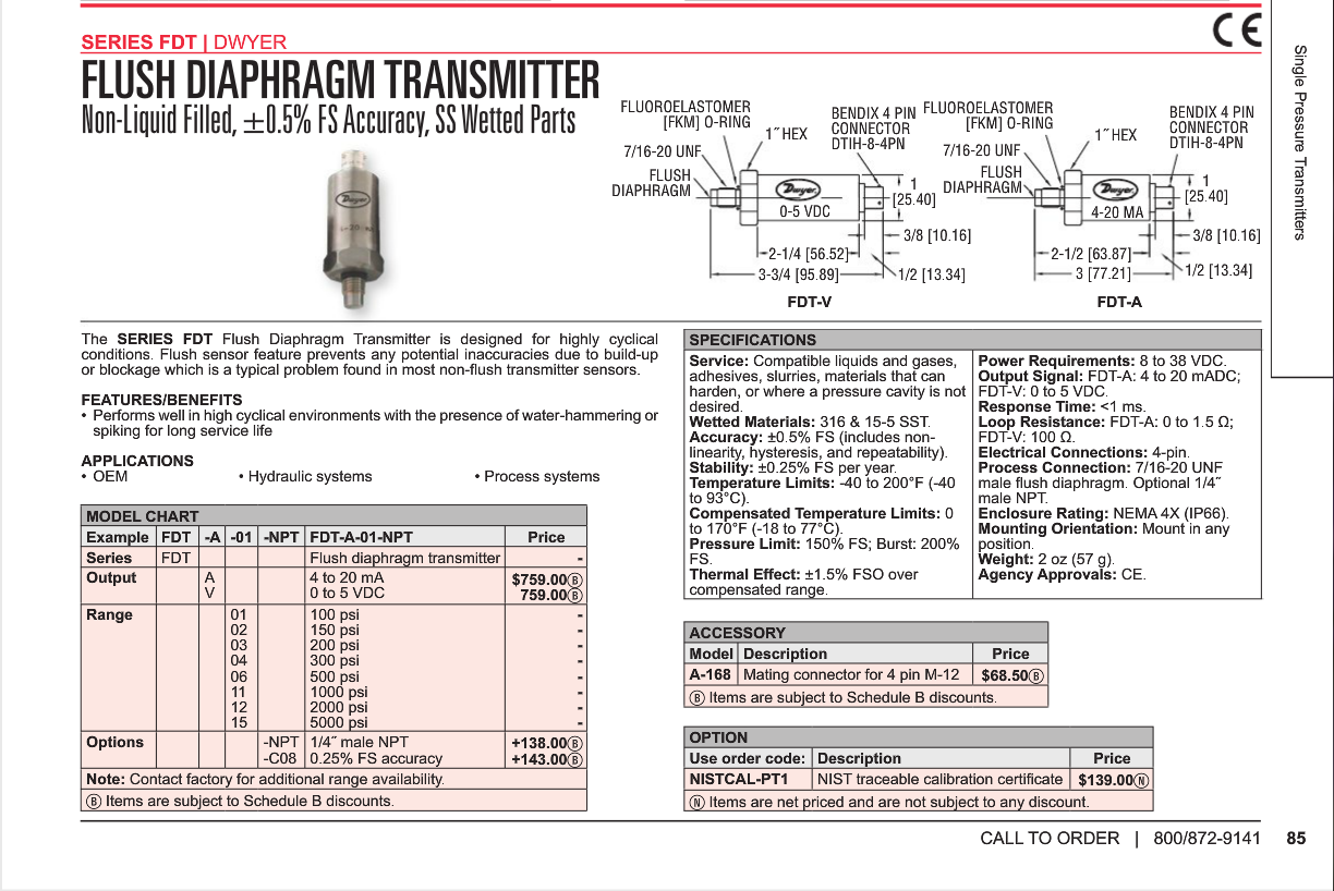 The Series FDT Flush Diaphragm Transmitter is designed for highly cyclical conditions.
